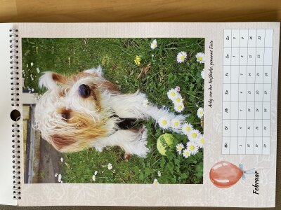 Hochformat A3, 12 Monatsblätter mit Kalendarium, Spiralfassung, Kromfohrländer-Fotos, von den Haltern der Kromi´s zur Verfügung gestellt, in sehr guter Qualität und mit viel Liebe zur Rasse von mir gestaltet.